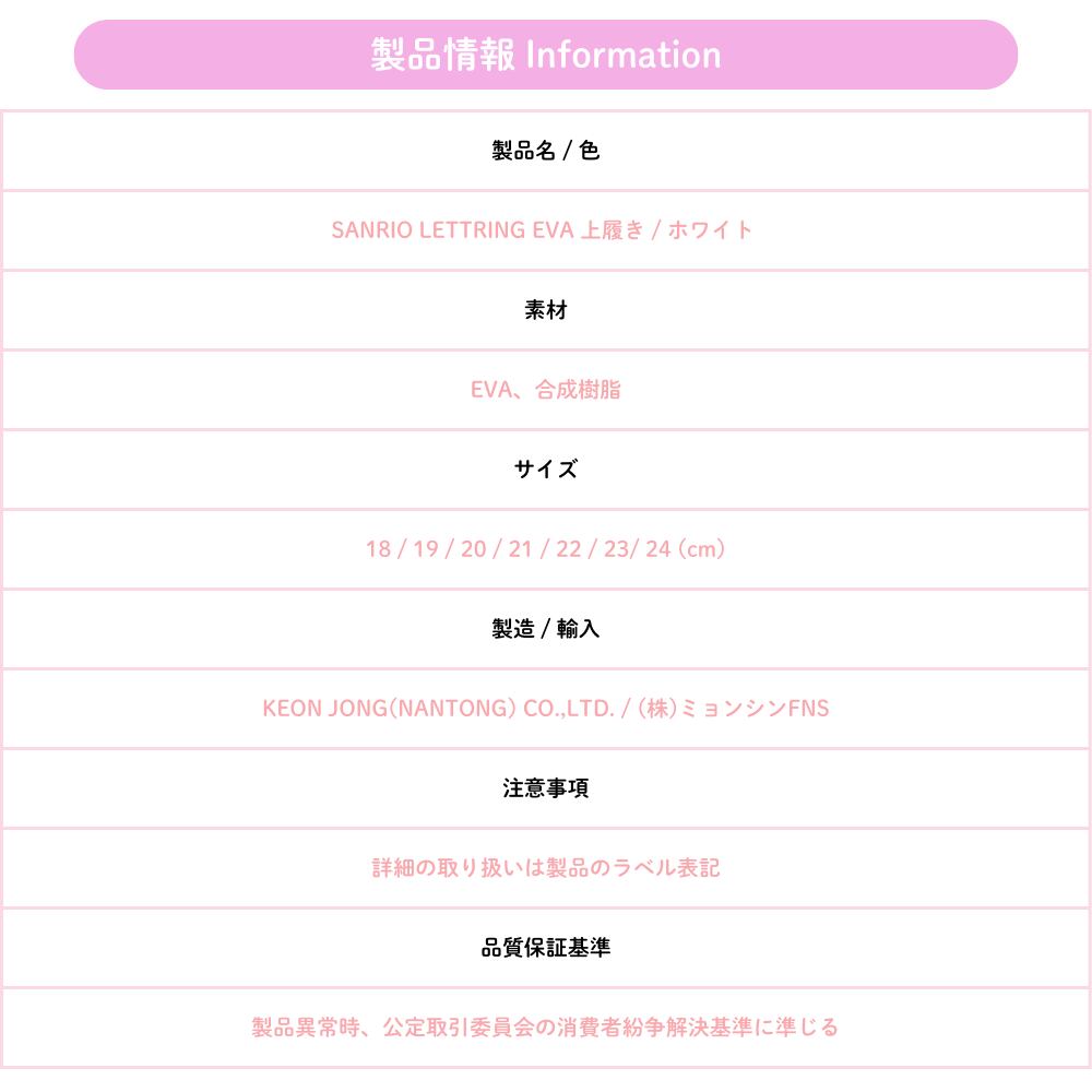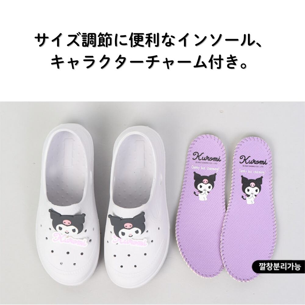 Sanrioの楽しいデザインで、お子さまが履くのを楽しみにすること間違いなし!EVA素材を使用しているため、軽量で透湿性が良く、足に優しいです。保育園での遊びや習い事にも最適です。